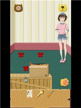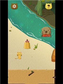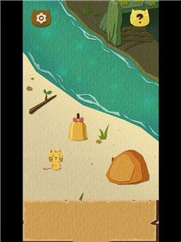 1.点击开始进入游戏,首先捡落石块划破盒子,出现了一只猫咪。