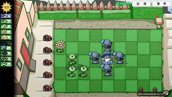 3、保护更多你的植物,防御力和攻击力不断增强,僵尸的类型有不断的升级,看你能坚持到哪一关。