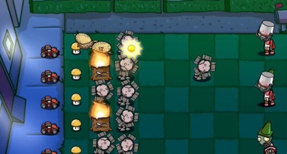 2、先种植一个火炬树桩,然后种植多个燃爆向日葵,后面可以种植阳光菇。