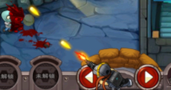 横扫僵尸本作在操作上采用的并不是射击游戏场景的摇杆方式,而是用触屏移动来控制。因为人物无法移动,所以我们只能控制射击的方向,玩家在屏幕中随意点击或者移动手指,人物的射击方向就会跟随着一起移动,以此来攻击前方的敌人。