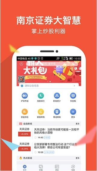 南京证券大智慧app是一款非常好用的金融理财服务类软件,这款软件可以帮助用户了解关于证券的相关信息,让用户了解和掌握最新的市场行情,它支持委托下单、银行转账、分时行情、新股申购等多种功能,满足用户多样化的使用需求。软件的界面简洁,功能丰富,操作简单,感兴趣的小伙伴们快来下载吧。