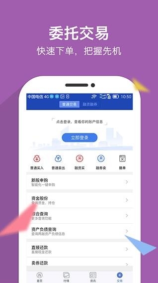 安全稳定的委托交易,支持股票、基金、融资融券和现金理财,丰富的交易功能助您把握先机;