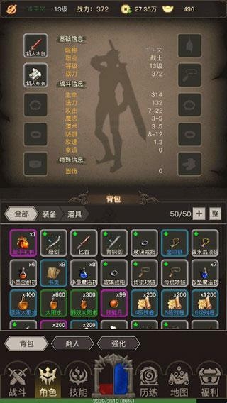 传奇之旅是一款超级好玩的角色扮演类手游。游戏采用文字冒险的形式,无论是剧情发展,还是战斗过程都会显示文字和数字,玩家能够清晰的查看角色的成长过程,并有计划的进行冒险。游戏的养成要素丰富,玩家可以获得武器装备,还能使用各种道具提升属性,有兴趣的朋友们赶紧下载吧。