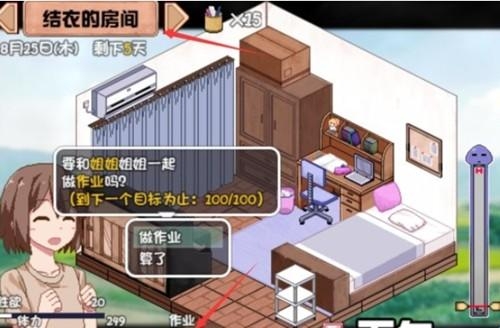 1、结衣:首先进入到结衣的房间,然后在房间下面有一个铅笔的标志,点击开始写作业。