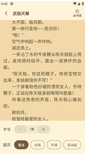 2、支持多种阅读模式,如白天模式、夜间模式、护眼模式等,还提供多种背景色调设置、翻页效果和自定义字号设置,满足用户不同阅读需求和偏好。