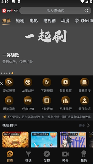 一起刷影视是一款非常好用的手机影视播放软件。这里提供超多不同种类的影视,各个平台的全方面收录,每日实时更新最新剧集,让每一位用户都能享受到最棒的影视体验。软件不收费,所有资源全部免费,用户想怎么看就怎么看!感兴趣的小伙伴快来下载吧!
