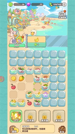 3、当获得一定数量的树叶后就可以解锁新的设施和店铺,还可以消耗树叶对设施进行升级。