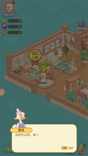 2、当你合成顾客需要的物品后就可以完成订单,完成订单就可以获得树叶用于解锁家具。