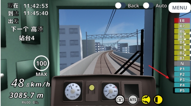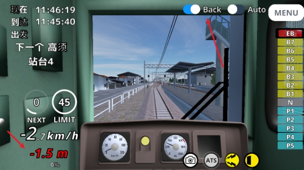 6、如果不小心停过站了,需要通过倒车来回到正确的位置。