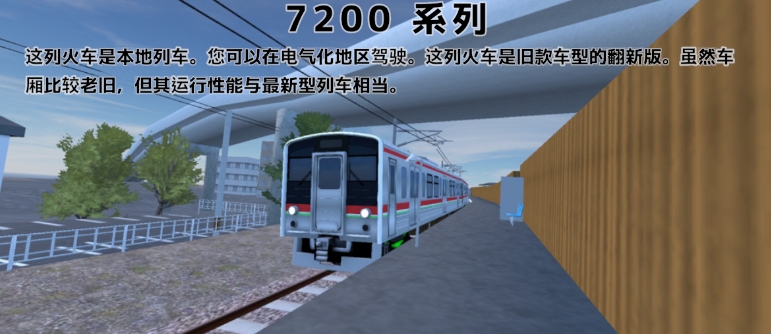 这列火车是本地列车。您可以在电气化地区驾驶。这是7200系列列车更新之前的车辆。享受老式直流电机的轰鸣吧!