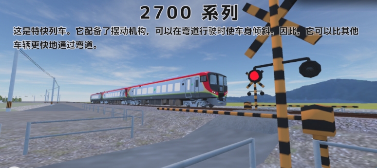 这是特快列车。它配备了摆动机构,可以在弯道行驶时使车身倾斜。因此,它可以比其他车辆更快地通过弯道。