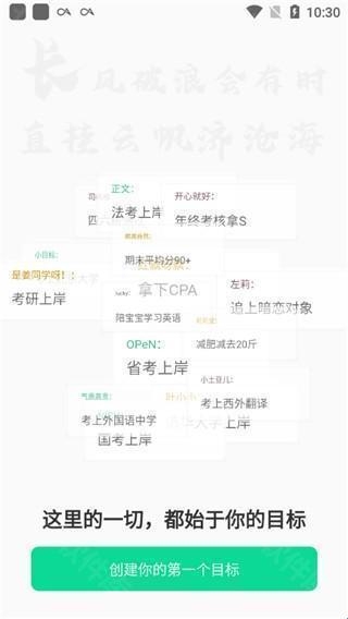 3、之后可以创建第一个目标,是减肥、考试过关、恋爱、还是工作顺利等,都可以自由定义