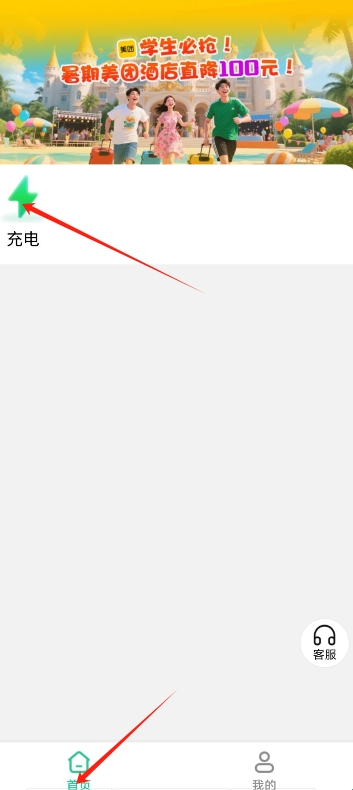 1、用户在软件首页点击充电,即可进入充电站查询界面进行下一步操作。