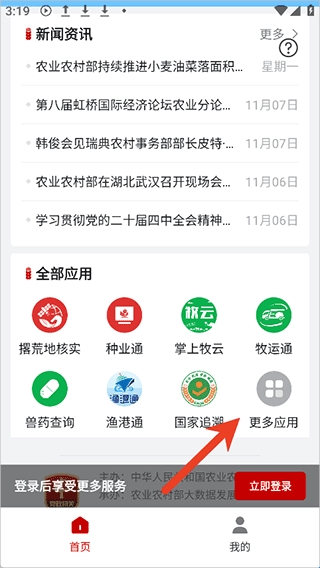 3、畜牧兽医:整合了掌上牧云、牧运通、兽药查询等功能。掌上牧云可用于畜牧业生产管理,牧运通方便动物疫病防控相关工作,兽药查询帮助用户了解兽药信息,保障畜牧养殖安全。
