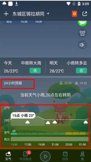 3、屏幕下拉,即可查看当天24小时之内每一个时间段的天气情况