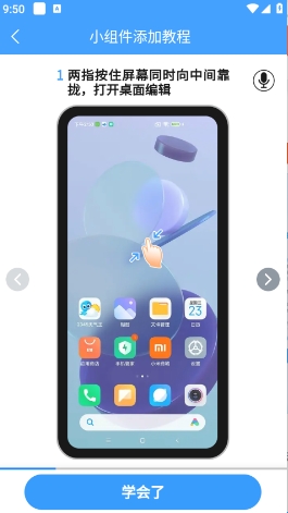 1、两指按住屏幕同时向中间靠拢,打开桌面编辑