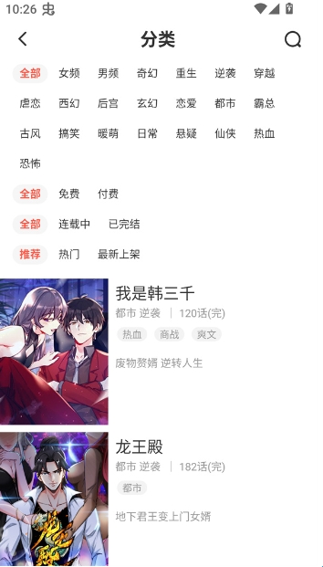 2、分类浏览:提供详细的漫画分类,用户可以按题材、作者、地区等条件筛选漫画。