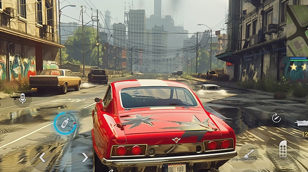 2、通缉系统:15星通缉会触发警方追捕,低星级可躲入喷漆店消除,高星级需击毁警用直升机或利用地形逃脱。