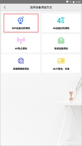 3、这里有很多种添加设备的方式,如WiFi设备扫码添加、4G设备扫码添加、AP热点添加、有线连接添加等