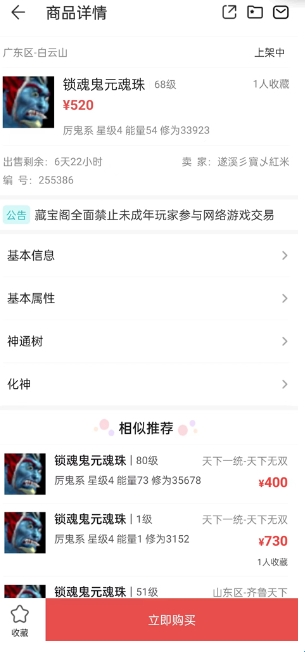 【购买】装备细节一目了然,下单即时发货,游戏内安全取出,避免找回