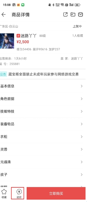 1、点击进入你要购买的账号,在其左下角有一个还价端口;