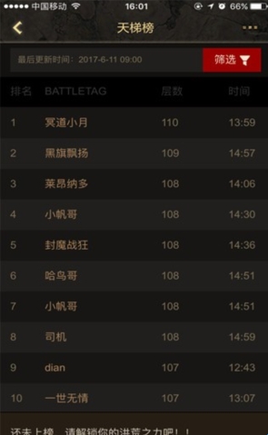 暗黑3天梯榜、英雄榜提供一键查看,让你随时随地了解全球组队趋势与高玩动向。此外,我们还推出了提升神器这项实用工具,让你精准定位自己的不足,轻松成为游戏大神(点击查看提升神器使用攻略)。