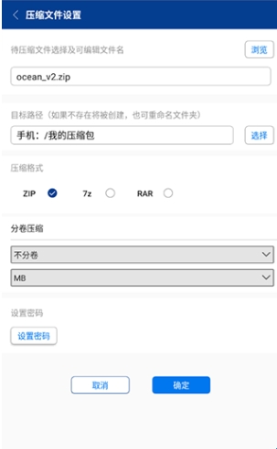 5、你可以选择压缩的格式和设置密码,设置完上述的后点击确定即可开启压缩