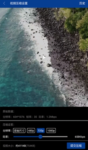 2、这里可以设置视频的画质和分辨率以及码率,这些都会影响视频压缩的大小,画质设置的越低就会越小