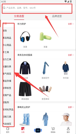 5、如果已有心仪的产品,可在搜索栏内通过产品名称,品牌,型号或者SKU号进行搜索,动动手指,直达心有所属。