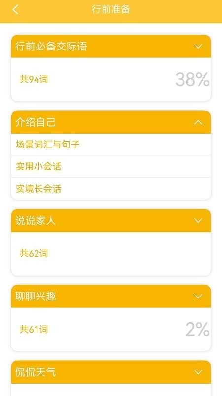 2.进入到软件中可选择“行前准备”类的英语点击进入