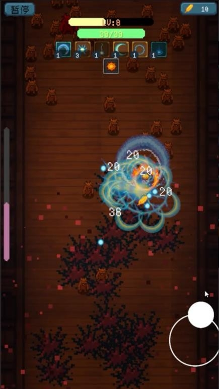 1、单机肉鸽游戏,战斗相对简单,攻击是自动的,只需单手指控制摇杆走位即可。