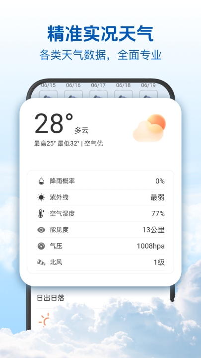 超长15天天气预报,计划出行运筹帷幄。24小时预报逐小时天气预报,天晴下雨早知道。各气象台官方预警第一时间发布,预警涵盖市县区。