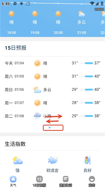3、在15日预报专题可左右滑动查看未来15天的天气情况