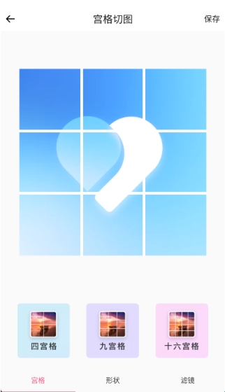 3、在宫格切图页面中可以进行四宫格、九宫格以及十六宫格的操作;