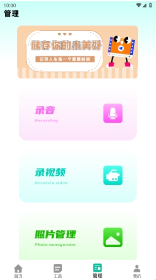 4、在管理页面中有录音、录视频和照片管理等不同的功能。