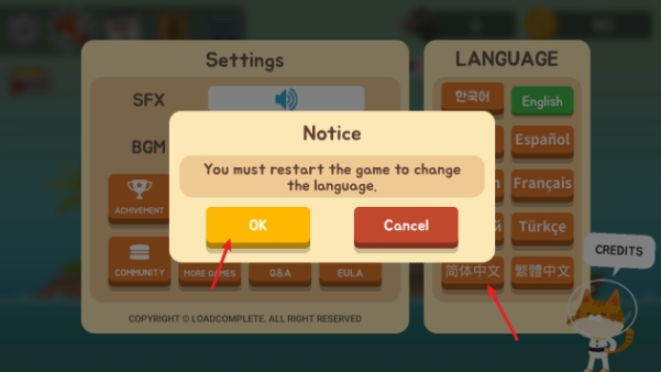 3、找到简体中文后点击,重启游戏后即可切换成功。