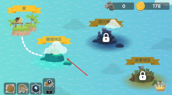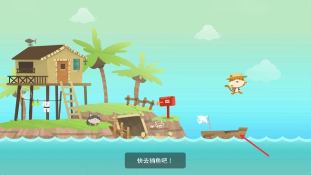 1、进入游戏后,点击小船即可前往海域钓鱼。