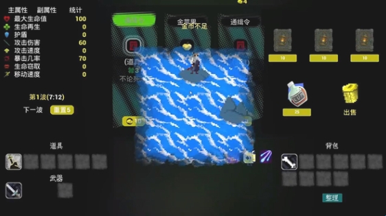 4、每一波都需要消灭一定数量的敌人,完成一波挑战后会获得新的天赋和金币,金币可以用来购买新的武器和道具。