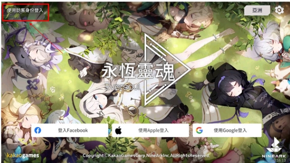 1、玩家在进入游戏时可以根据显示的三个渠道登录游戏,也可以选择左上方的游客登录先体验一下。