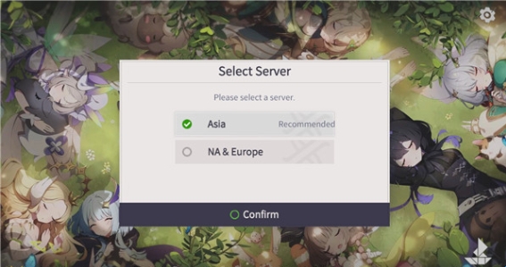 1、下载好游戏后,点击进入首先就是服务器选择,上面是亚洲服务器(建议选择整个),下方是美洲和欧洲服务器。