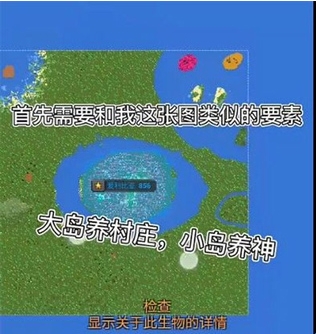 1、首先需要有一个和图中类似的地图,大岛养村庄,小岛养神。
