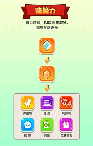 1、算力决定tlbc的采集速度,拥有的算力值越高,获得tlbc越多,每天完成所有算力活动,还有随机红包奖励。