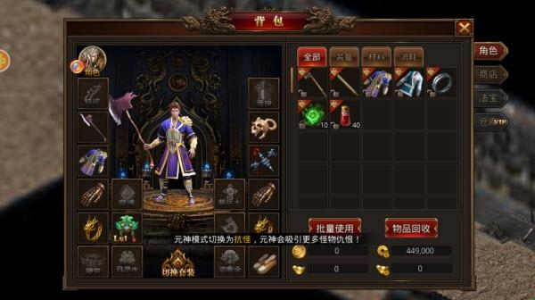 1、海量的游戏装备和道具可以使用,自由搭配组合。