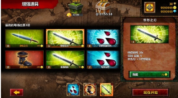 区别与一般的不氪金MOBA游戏,这里提供初始化装备选项,可购置三类武器或者辅助道具,但这些装备又冷却时间。