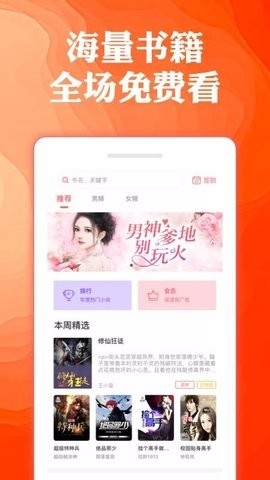 2、平台每周会收集和展示最受欢迎的书籍,如修仙狂徒、绝品鬼少等优秀作品,让你轻松获取最新的阅读推荐。