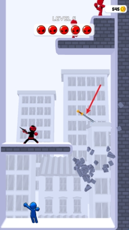 2、再次点击即可让火柴人瞬身到飞剑的位置,通过此方式来消灭敌人。