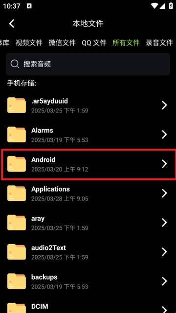 3、点击所有文件,选择需要剪辑的音频文件即可