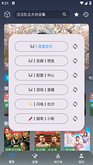 2、会显示所有的影视源站点,点击即可切换。