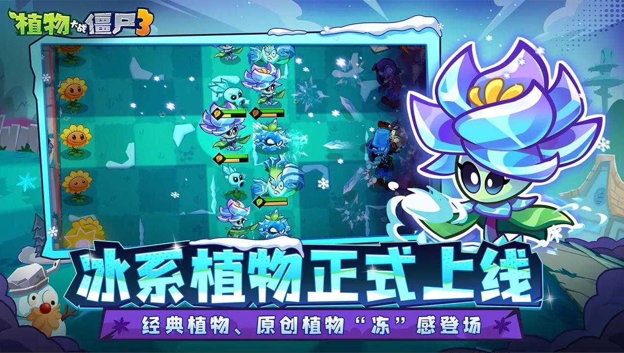 奖励包含:雪莲结晶、火鸡币、钻石等抽卡资源;寒冰菜问、寒冰刺梨等植物;多款冰系植物装扮