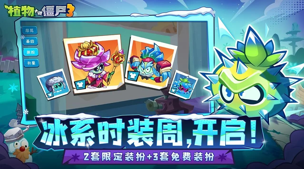 冰晶雪莲-雪莲女帝、寒冰菜问-极冰道场、冰冻生菜-雪绒帽、寒冰射手-北风旅客、刺梨守卫&寒冰刺梨-炫目镜